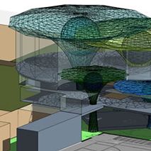 This is an interesting project for many reasons. It is an attempt to create a sub-regional planning capability employing the Master Planning method on a grass roots level. It makes use of an existing property and two buildings with the intent to add more prefabricated “rooms” all under a wooden Armature “tent” and viewing loft.