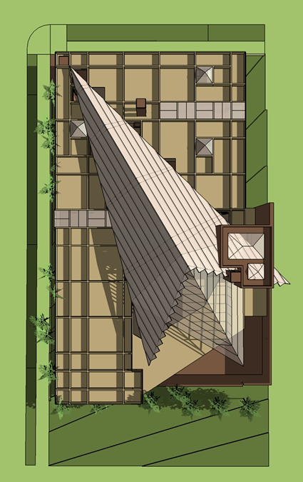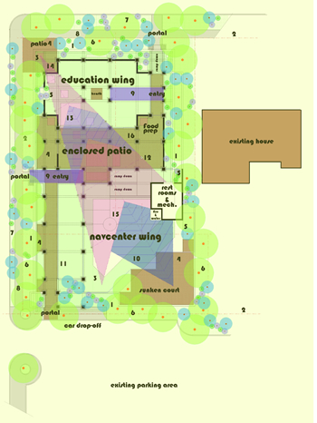 link: plan and description | “But how comfortable do the people feel who work in such surroundings? As part of an effort to improve its facilities, one large pharmaceutical corporation, Merck & Company, surveyed two thousand of its office staff regarding their attitudes to their place of work - an attractive modern commercial interior. The survey team prepared a questionnaire that listed various aspects of the workplace. These included factors affecting appearance, safety, work efficiency, convenience, comfort, and so on. Employees were asked to express their satisfaction, or dissatisfaction, with different aspects, and also to indicate those aspects that they personally considered to be the most important. The majority distinguished between the visual qualities of their surroundings - decoration, color scheme, carpeting, wall covering, desk appearance - and the physical aspects - lighting, ventilation, privacy, and chair comfort. The later group were all included in a list of the ten most important factors, together with size of work area, safety, and personal storage space. Interestingly, none of the purely visual factors was felt to be of major importance, indicating just how mistaken is the notion that comfort is solely a function of appearance or style. “What is most revealing is that the Merck employees expressed some degree of dissatisfaction with two-thirds of the the almost thirty different aspects of the workplace. Among those about which there was the strongest negative feelings were the lack of conversational privacy, the air quality, the lack of visual privacy, and the level of lighting. When they were asked what aspects of the office interior they would like to have individual control over, most people identified room temperature, degree of privacy, choice of chair and desk, and lighting intensity. Control over decor was accorded the lowest priority. This would seem to indicate that although there is wide agreement about the importance of lighting or temperature, there is a good deal of difference of opinion about exactly how much light or heat feels comfortable to different individuals; comfort is obviously both objective and subjective. The Merck offices had been designed to eliminate discomfort, yet the survey showed that many of the employees did not experience well-being in their workplace - an inability to concentrate was the common complaint. Despite the restful colors and attractive furnishings (which everyone appreciated), something was missing. The scientific approach assumes that if background noises are muffled and their direct view controlled, the office worker will feel comfortable. But working comfort depends on many more factors than these. there must also be a sense of intimacy and privacy, which is produced by a balance between isolation and publicness; too much of one or the other will produce discomfort. A group of architects in California recently identified as many as nine different aspects of workplace enclosure that must be met in order to to create this feeling. These included the presence of walls behind and beside the worker, the amount of open space in front of the desk, the area of the workspace, the amount of enclosure, a view to the outside, the distance to the nearest person, the number of people in the immediate vicinity, and the level and type of noise. Since most office layouts do not address these concerns directly, it is not surprising that people have difficulty concentrating on their work.” | Witold Rybczynski HOME - A Short History of an Idea 1986 pp 226-228 | | This observation by Rybczynski is over 16 years old. Although many things have improved in the increment, office interiors as a system, remain fundamentally the same. There are a number of primary design assumptions that have not been challenged and that continue, no matter the cost and apparent amenity of office environments, to produce unhealthy and inadequate workplaces [link: manifesto]. At the time that he published his book, we built the Capital Holding Design Center [link]. Like the Orlando environment before it, and the work that followed [link], we explicitly addressed the underlying issues of workplace dissatisfaction: the worker cannot control the essential conditions of their surround, temperature, sound, privacy, real-time configuration, light levels, personal customization; nor, does the typical work environment create place and relate to someplace. The typical environment - over-lit, rigid, one size fits all, unforgiving materials - is a creature of averages; it does not respond to the individual; it is a high class work prison. Nor, does it establish an urban landscape that has both exterior and interior amenity and identity. Lacking in material quality, failing to create a variety of different sub-climes and unique niches, the typical modern workplace fails to meet basic human requirements. Not only is this the condition of the vast builder-designed environments that were never intended to have distinction, it is the result of the majority of high-class architect-designed premium environments where design and visual tricks overlook and overwhelm true comfort. The vast majority of modern architecture makes great pictures but offers little the the way of true utility or comfort. The typical office building is not a place that many have any true like or passion for. Automobile manufactures do a better job. | The geometry of the building is square on square with the 30/60 degree triangle layered on top of it. The second geometry emerges out of the first as the building progresses from the north end to the south. The building presents to the north and west streets a conventional form and proportion with enough hints, however, that something different is going on inside. That “something” grows to become the major expression at the NavCenter Radiant Room. Materials stay consistent thereby providing an integrating armature. Brick, concrete, glass and tile ma