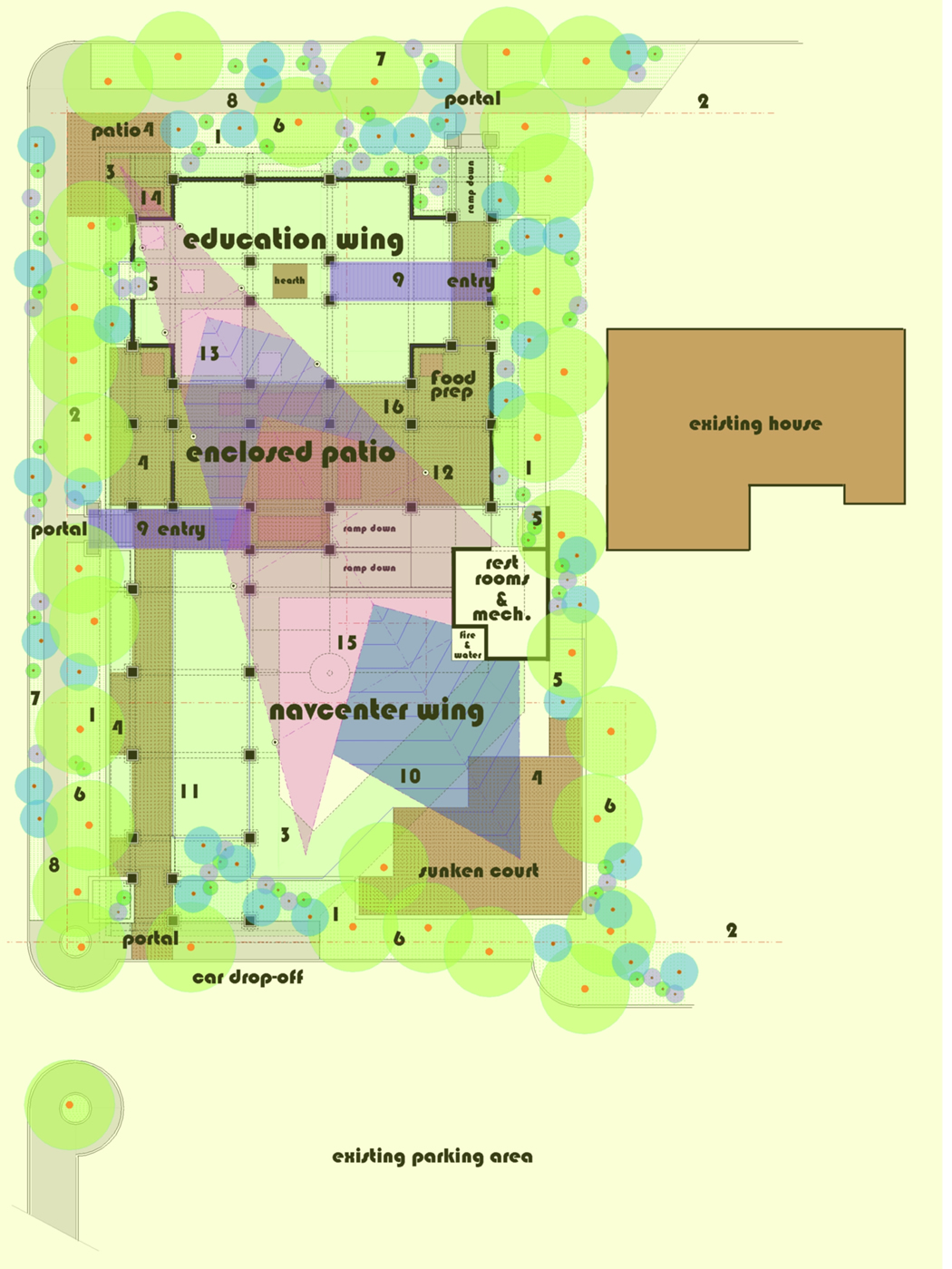 building is composed of three zones. On the North
