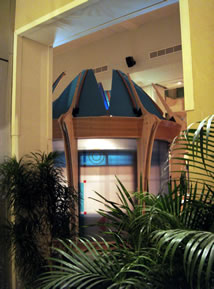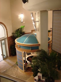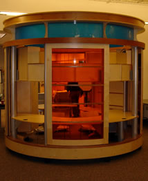 | We have continued to refine the POD design over the years and to add variety to the line. Below are snapshots of PODs in their chronological order. The first drawing is my original 1990 POD sketch. The second, is the Paul Lyons POD built in 1997. Third, the CubeOffice POD - called this because it is built from standard cube-shelving pieces - first produced in 2002. Fourth and fifth the PODPopulas, in two different configurations, developed in 2006. This POD was designed by Bill Blackburn. The sixth shown is the rotating POPMaximus installed in 2007 - Bill Blackburn and I worked on this together. He did the majority of the actual detailed designing. Last is the first production version of the mediaPOD as delivered in early 2008. I lead the design process on this POD working with the AI shop crew. |