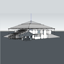 | The following is a brief narrative with screen shots from the 3d Model of the PAVILION design. The latest SketchUp Model of this work can be down loaded by clicking on the graphic below: |