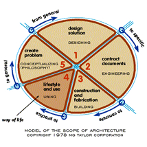 Click on the graphic to the left to go to this two part paper. It is a good introduction to the Language and has the benefit of having been written in response to a difficult and ultimately rewarding piece of work. While conceptual as well as “a builder,” I cannot explain the Taylor Method out of context of an actual use of it. The work is fact-based and experiential, not theoretical. It also evolves through use and can only be understood, as intended, in the context of use. |
