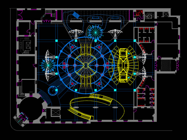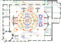 As noted, the Armature carries all of the wiring necessary for lighting, power, multimedia and control systems. It servers four other primary functions: It creates a space - which in turn makes many sub-spaces - in what otherwise would be a cavernous room. It presents a direct metaphor of the Center’s purpose and its place in history. It remains a constant while all else is continually changing to reflect and support the work within. It displays, electronically and via other media, the work produced. Therefore, it creates and holds social memory. These functions are consistent with Herb Greene’s [link: herb greene, architect] concept of Armature Of all our projects to date (2006), this is our most complete rendering of the idea. |