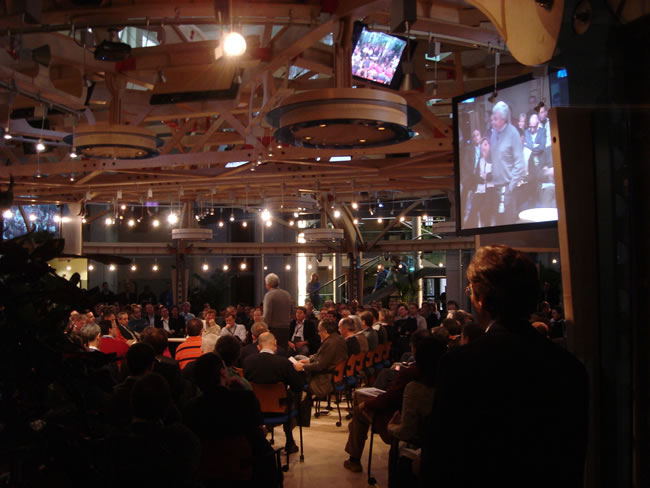 If you wish to see how this environment was built go to: becoming unimanagement nav center. which tells the story of the two months leading up to the making and through the opening of the facility. Go to the first six months of the unimanagement nav center to follow the creation and practice of the Center’s capabilities and operations. NavCenters are emergent [link: zone of emergence] as are the processes they house. The interaction between the architecture, the work process and technology it tight - they have to co-evolve together while in the process of supporting multiple iterations of real world work. It takes over a year to learn how to fully employ a NavCenter. The basics are set during the first 6 months - the learning and improvements continue forever. This Design/Build/Use practice is a radical departure from present architectural concepts and processes [link: thesis]. |