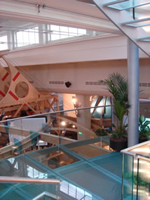 This approach rejects the old dichotomies between function and art [link: art-rand, architecture-wright]. The overall impression of the NavCenter is that of a high variety work ecosystem, with many niches, that demand exploration and involvement. Every component is ornament and a direct expression of its function. The architecture also makes direct references to history - broadly and locally. This is appropriate given its function [future link]. As art, the environment is the expression of a theme [future link] and presents a distinct point of view of the world. |